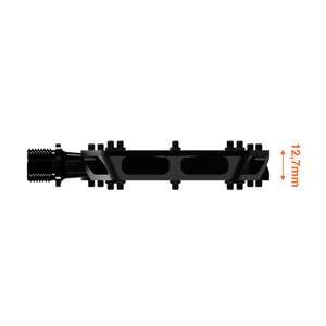 Kompakte, CNC-gefräste Plattform speziell für Schuhgrößen bis 35. Konkav geformt für einen sicheren Stand und ausgestattet mit kurzen aber bissigen PINS für zuverlässigen Grip und geringe Verletzungsgefahr.