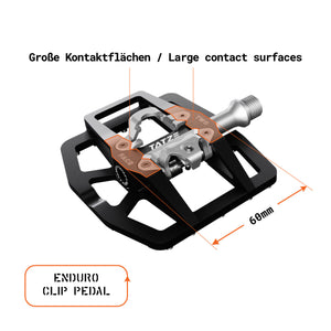 The WO-FACE2 is in its 2nd generation an extremely powerful folding pedal and an efficient clip-in pedal at the same time.