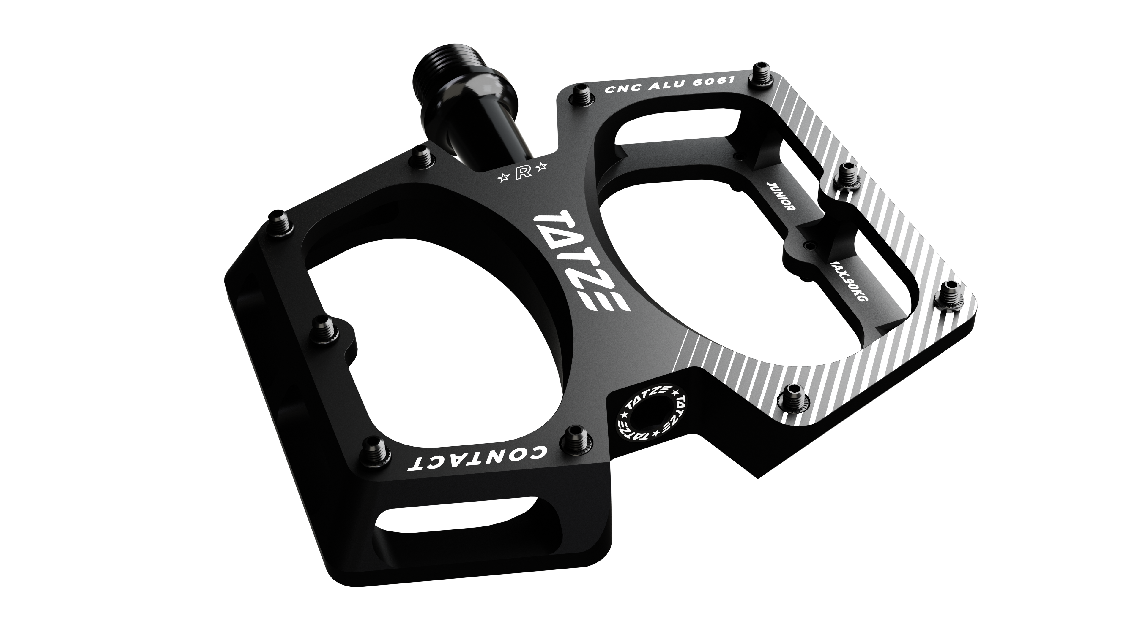 El CONTACT CNC Junior es un pedal muy ligero con 289 g y destaca en términos de estabilidad con un eje de acero de alta resistencia y un cuerpo de pedal de aluminio fresado por CNC. El pedal evita el contacto no deseado con el suelo gracias al diseño delgado y la construcción abierta permite que la suciedad caiga a través del pedal.