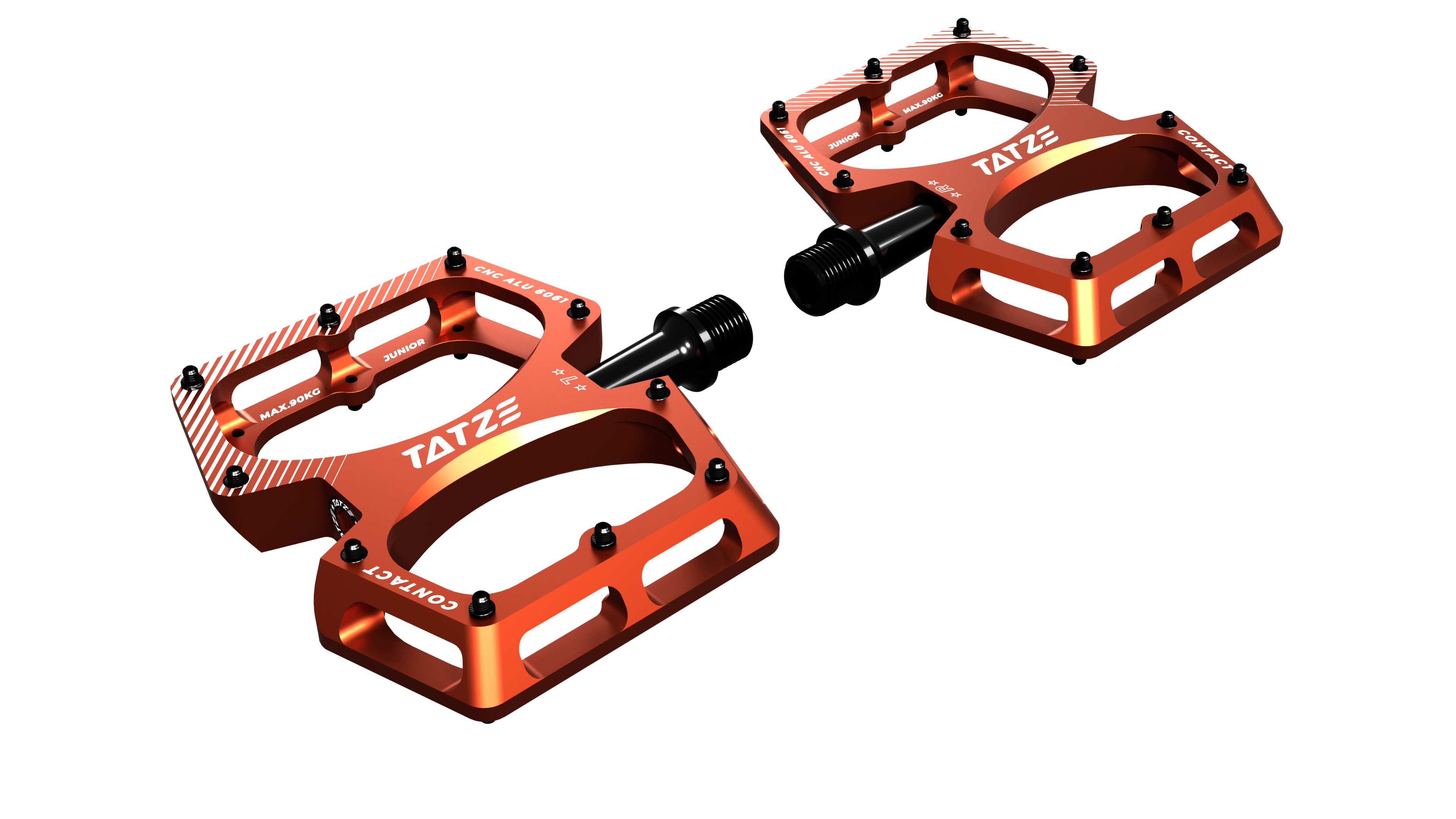 El CONTACT CNC Junior es un pedal fino, ligero y de fácil agarre para niños y adolescentes. Para mantener el nivel de agarre alto y el riesgo de lesiones bajo, se instalan PINS ágiles pero relativamente cortos. Los PIN se pueden utilizar en ambos lados y si quieres ser aún más agresivo simplemente puedes darles la vuelta y extenderlos.
