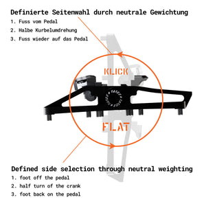 Un choix de côté défini est particulièrement important pour une pédale combinée. Avec le TWO-FACE2, le côté reste sélectionné pendant quelques secondes après le déchargement, de sorte que la même face/fonction est à nouveau disponible lors du prochain appui.