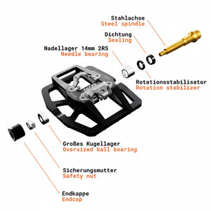 - Robuste & durable : Corps de pédale usiné CNC, axe en acier et Roulements à aiguilles et à billes de grande dimension.