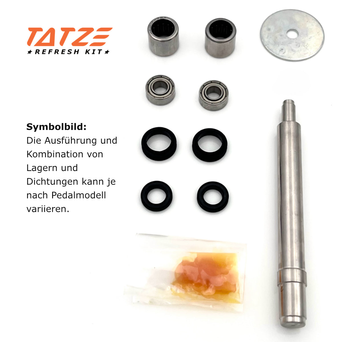 Grundsätzlich kann jedes TATZE Pedal neu abgeschmiert werden, wer dabei gleich alle Lager und Dichtungen erneuern möchte, und somit ein komplett neues Innenleben möchte, ist beim Refresh Kit richtig.